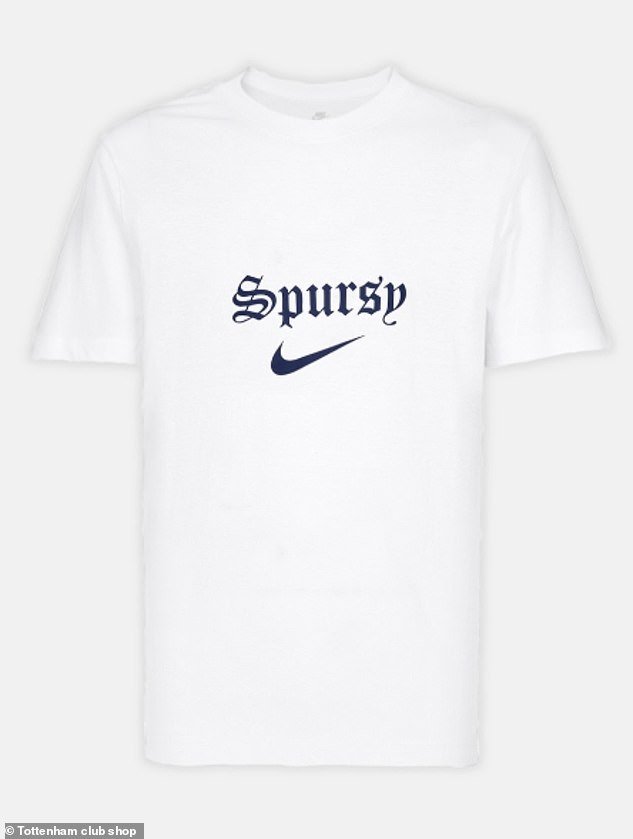La camiseta blanca, que presenta la etiqueta ‘Spursy’ y la marca Nike, está disponible en la tienda oficial del club por £30.