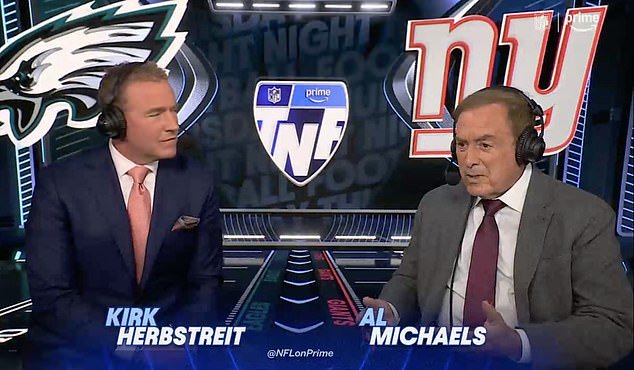 Pero el corredor se unió a los Eagles en la agencia libre en lugar de ser canjeado allí, y los fanáticos se apresuraron a señalar el error que Michaels, de 80 años, cometió al menos en dos ocasiones durante la transmisión Prime Video del juego Eagles-Giants.