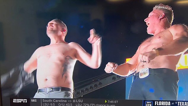 Sin embargo, la cosa no quedó ahí. McAfee se quitó la camisa y Lanning rápidamente hizo lo mismo, para deleite de los asistentes.
