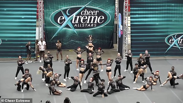 Con su glamoroso uniforme Code Black, Hudson comenzó la rutina como volante central en la competencia de porristas de estudiantes adultas.