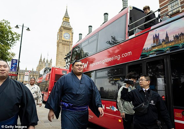 Los londinenses quedaron atónitos en su viaje matutino al ver a los mejores luchadores de sumo del mundo paseando por las calles de la capital esta semana.