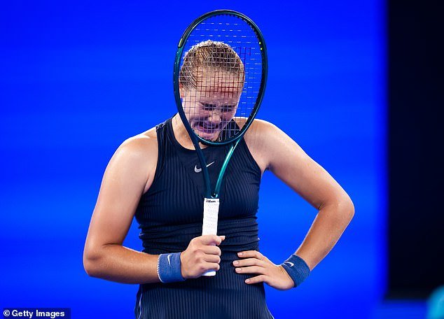 La joven de 18 años a menudo lloraba por su juego al traducir el error y se le escuchó sollozar después de jugar un doble rechazo.