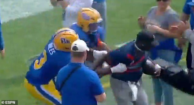 Durante el juego de Pitt Louisville el sábado, ocurrió un momento extremadamente extraño cuando algunos jugadores de los Panthers lucharon con un chico de pelota.