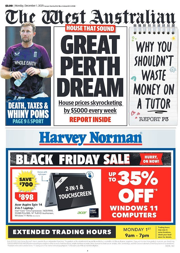 Y el lunes, Australia Occidental El periódico atacó los comentarios de Root y colocó al hombre de 34 años en su portada con el titular: “Muerte, impuestos y pompones quejosos”.