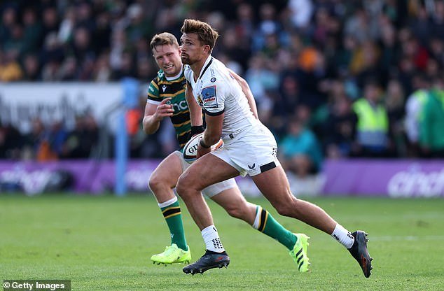 Henry Slade en acción para Exeter en su emocionante empate 33-33 en Northampton el mes pasado