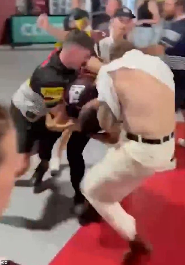La policía de Queensland acudió al lugar y sacó a ambos hombres del estadio, aunque finalmente no se presentaron cargos de agresión.