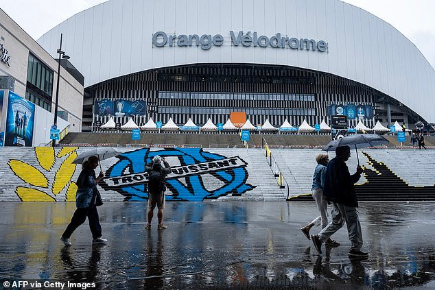 El estadio Velódromo de Marsella se empapa en la lluvia antes de mover el dispositivo
