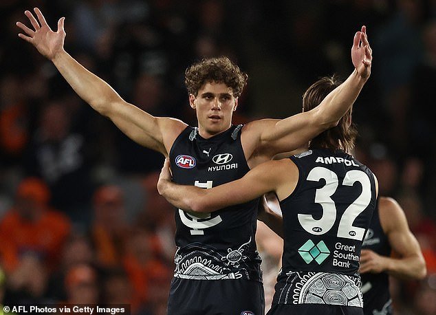 El chico del cartel de la AFL Bailey Smith eliminó rápidamente un puesto de Instagram a través del delantero de Carlton Charlie Curnow durante las controvertidas celebraciones de los locos el lunes.