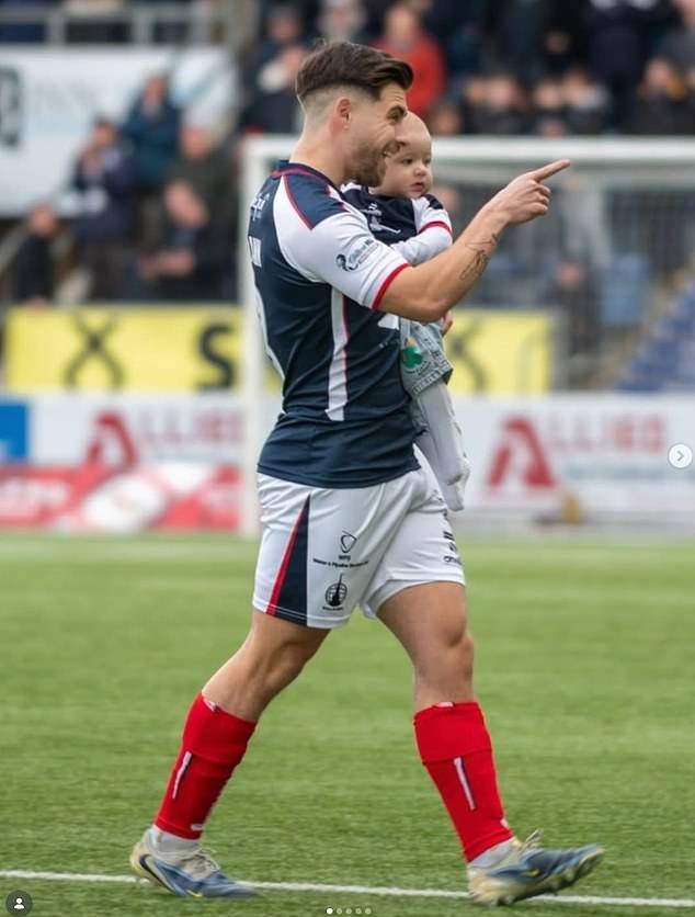 El defensa del Falkirk Leon McCann con su hijo Brooks, al que le han colocado implantes cocleares