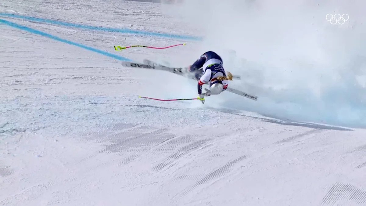 Luego, el domingo, ocurrió el desastre. A solo 13 segundos de su carrera, Vonn chocó contra una puerta y cayó con fuerza al suelo en un impacto horrible. Estuvo tumbada boca abajo en la nieve durante 15 minutos mientras el personal médico la atendía antes de que finalmente fuera transportada en helicóptero.