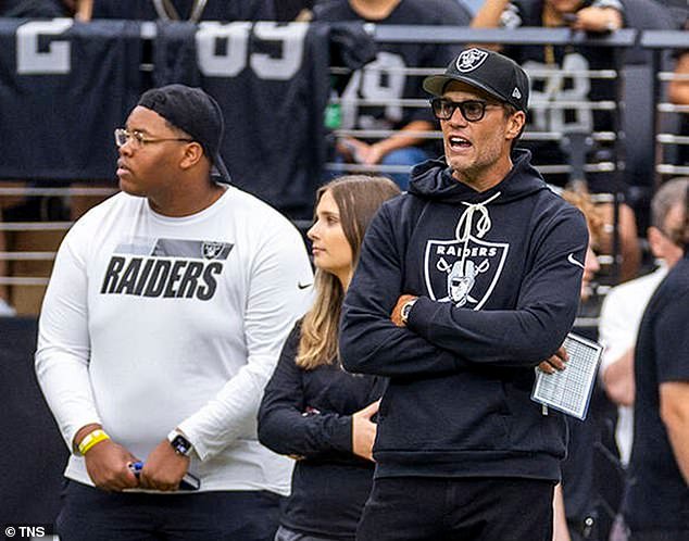 Tom Brady, propietario minoritario de Las Vegas Raiders, anima a los jugadores en agosto