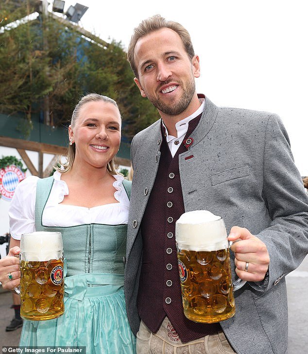 Harry Kane y su esposa Kate dirigieron las celebraciones del Oktoberfest del Bayern Munich cuando el tradicional festival alemán llegó a su fin.