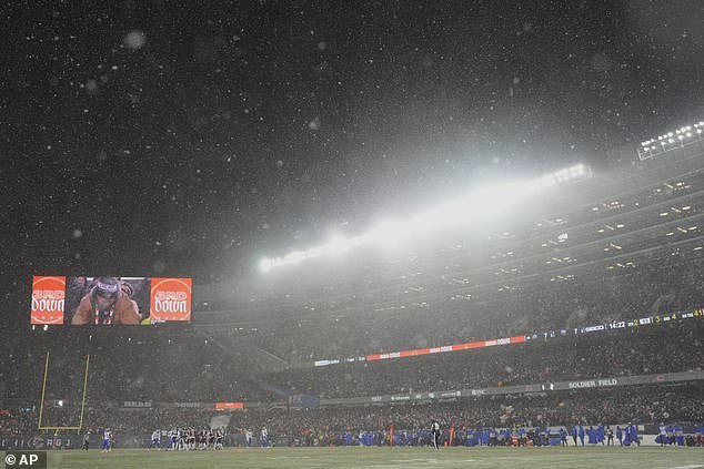 Durante el juego de la ronda divisional, las temperaturas rondaron los 18 grados, con nieve y vientos azotadores alrededor del Soldier Field.