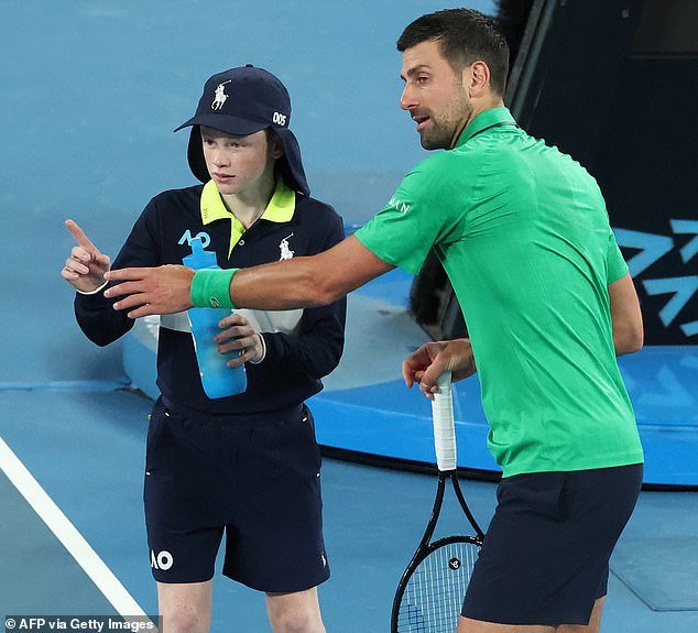 Novak Djokovic habla con un recogepelotas durante un partido del Abierto de Australia. Los niños y niñas no cobran por su trabajo en Melbourne