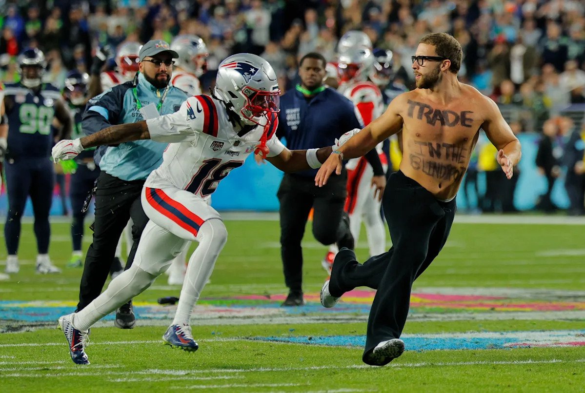 Super Bowl 2026: el WR de los Patriots, Kyle Williams, persigue al invasor del campo