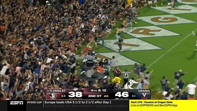 Lo que debería ser una noche histórica para los Cavaliers de Virginia, después de haber derrotado al No. 8 en el estado de Florida 46-38 en tiempo extra, fue nublado por el incidente.