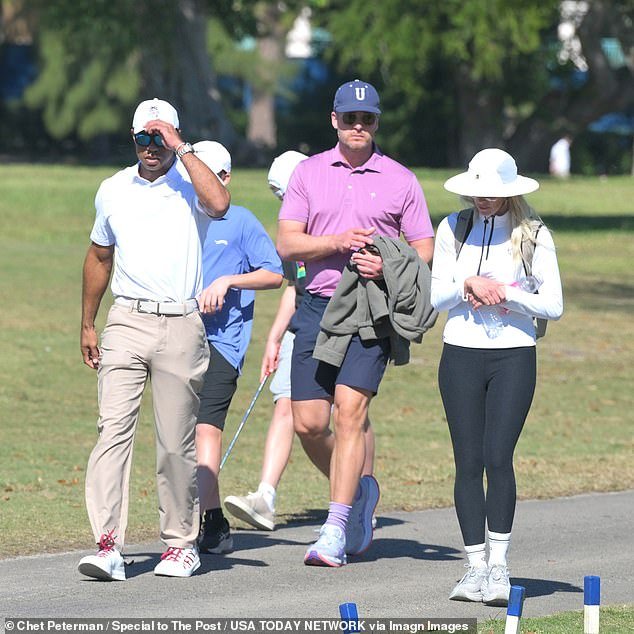 “Un gran tiro”, se escuchó a Tiger decirle a su hijo mientras salía del green. La estrella del golf fue fotografiada caminando por el campo con su ex esposa mientras veían competir a Charlie.