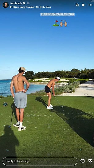 Home Deporte Tom Brady muestra su cuerpo tonificado mientras juega golf sin camisa con...