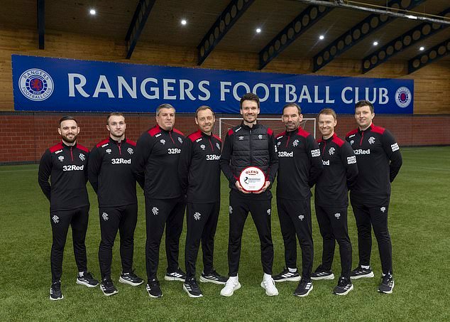 Danny Rohl y su cuerpo técnico de los Rangers tras ser nombrado Mánager del Mes