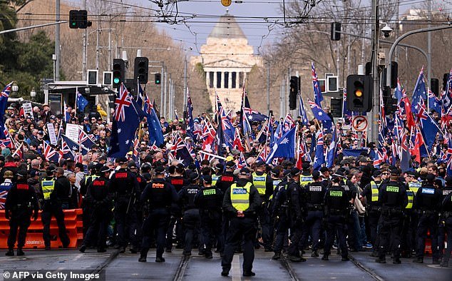Protesta del Día de la Invasión de Naarm (en la foto de abajo)