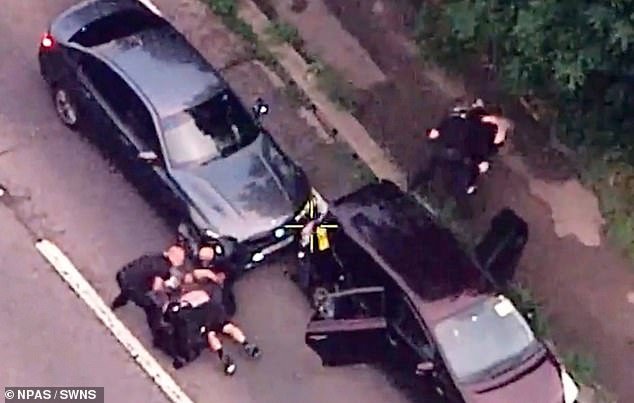 Las imágenes muestran cuatro coches de policía encubiertos acercándose al taxi que transportaba a la pareja en un arriesgado intento de atraparlos.