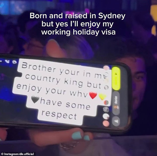 A David Le, nacido y criado en Sydney, una joven le dijo que “disfrutara de su visa” después de que él se negó a tocar su solicitud de canción de Eminem (su mensaje se muestra en la foto)