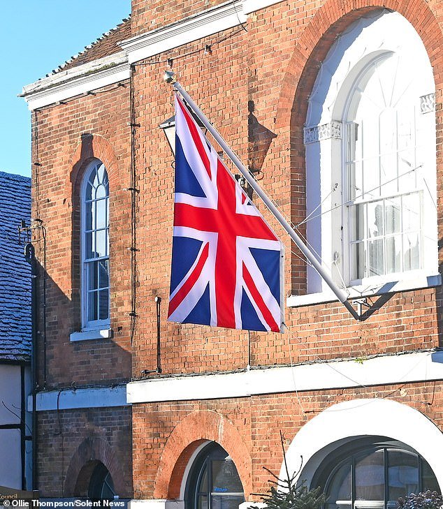 La bandera modificada, cortada para adaptarse a un mástil en ángulo, fue calificada de “irrespetuosa” y “patética” por los residentes de Whitchurch, Hampshire.
