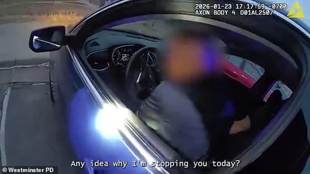 Las imágenes de la cámara corporal publicadas por el Departamento de Policía de Westminster en Colorado capturaron el inquietante momento durante una parada de tráfico el 23 de enero.
