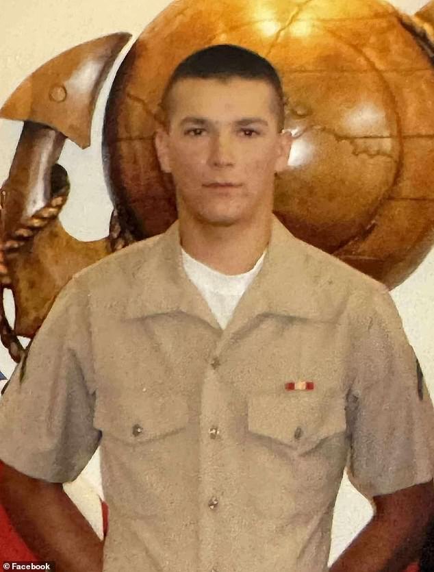 El domingo, alrededor de 100 personas se presentaron en la gasolinera donde Valdez (en la foto con su uniforme de la Marina) fue visto con vida por última vez para buscarlo.