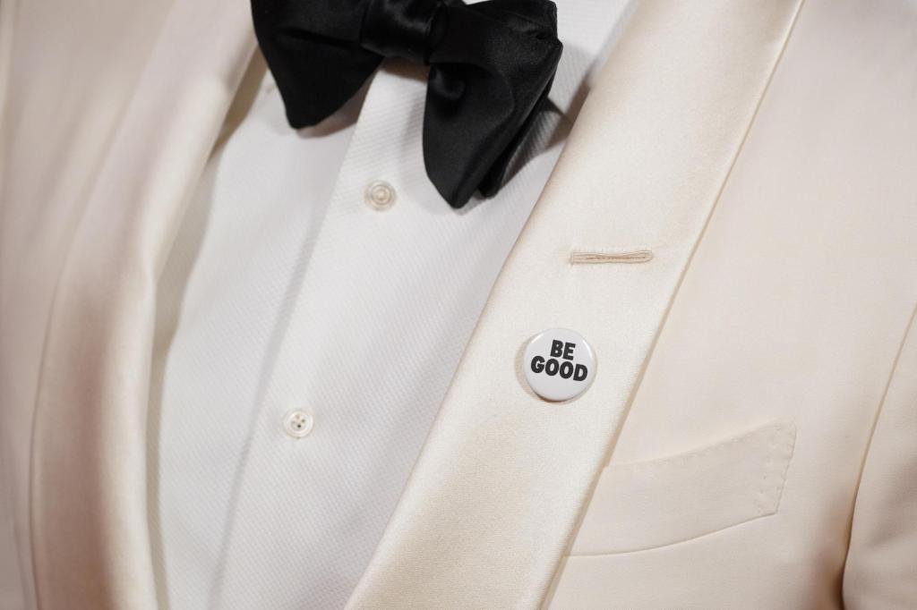 Los pines en blanco y negro presentaban lemas como “BE GOOD” y “ICE OUT”, aportando un aspecto político a la ceremonia de premiación después de la ceremonia relativamente apolítica del año pasado.