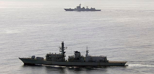 Los aviones de combate chinos llevaron a cabo ataques de cohetes simulados contra el HMS Richmond cuando condujeron a través del Estrecho de Taiwán a principios de este mes. Imagen: HMS Richmond (primer plano) acompaña al destructor chino Jiaozuo a través del Canal de la Mancha