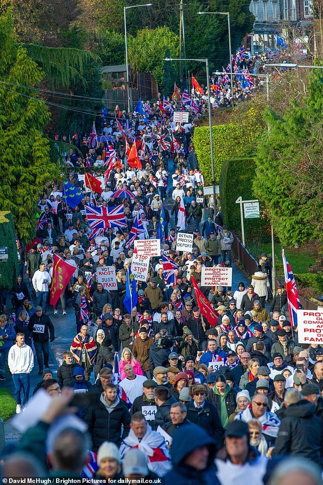 Cientos de manifestantes se reunieron esta mañana, muchos de ellos envueltos en banderas inglesas y sosteniendo pancartas, marcando el tercer fin de semana consecutivo de manifestaciones mientras la frustración alcanzaba un punto de ebullición.