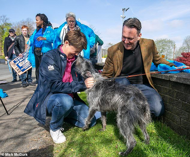 Ruth Davidson conoce a un amigo peludo mientras hace campaña en Rutherglen con Russell Findlay