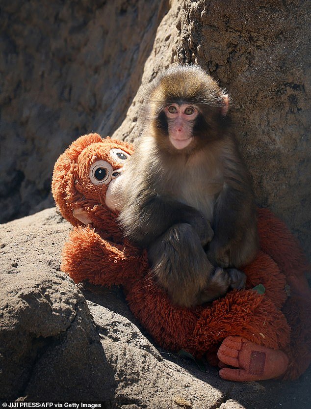 El mono huérfano, que vive en el zoológico de la ciudad de Ichikawa, cerca de Tokio, causó revuelo en las redes sociales después de que pareció buscar consuelo en un mono de peluche después de ser rechazado por los otros macacos en su recinto.