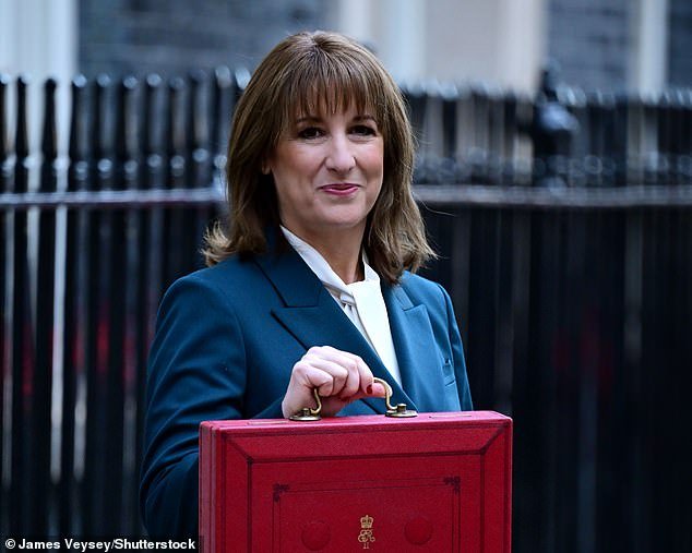 Las facturas promedio de energía de los hogares disminuirán en £150 al año a partir de abril, dijo Rachel Reeves el miércoles, pero trasladará algunos costos al contribuyente. En la foto: Sra. Reeves, en la foto del día del presupuesto