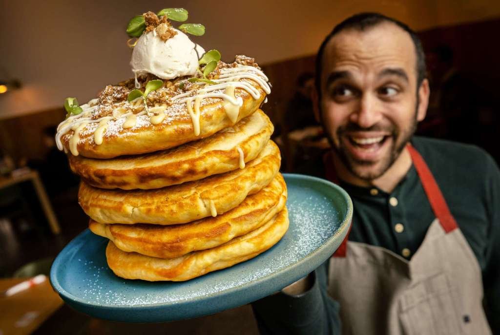 Acorn Cafe, Haldsburg: El Café de Acorn, que se inauguró el año pasado en el antiguo negocio de alimentos de Oakville de Haldsburg, tiene un hotcake vegano de limón -icotta en su menú, servido con la cuajada de limón de la casa, la ricotta golpeada, la avena desmenuzable y con una esfera de lavanda de limón. 124 Matheson St., 707-955-7001, Haldsburg, Acornhaldsburg.com