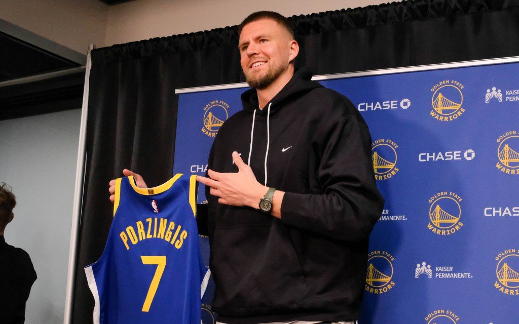 Una hora antes del partido del sábado por la noche contra los Lakers sin Luka Doncic en Los Ángeles, los Warriors presentaron a Porzingis, su única incorporación nueva desde la fecha límite de cambios.