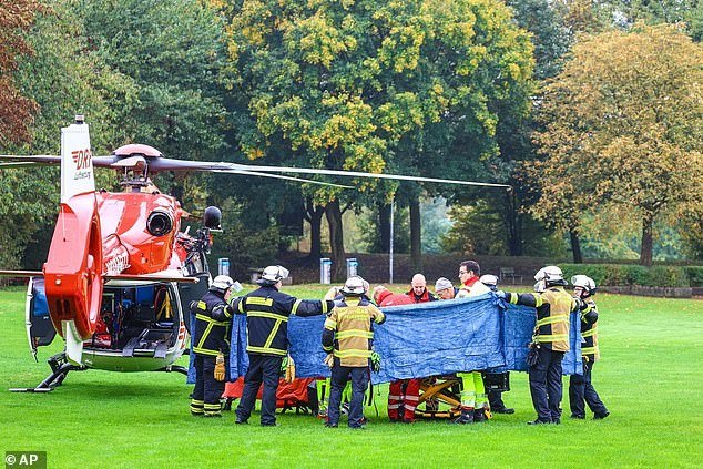 Un helicóptero de rescate fue fotografiado en la escena del accidente en Herdecke, acompañado de servicios de emergencia.