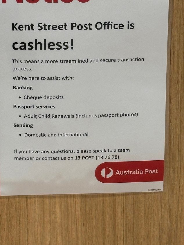 La sucursal de Kent Street en el CBD de Sydney no permite efectivo junto con la oficina de correos masculina en las playas del norte