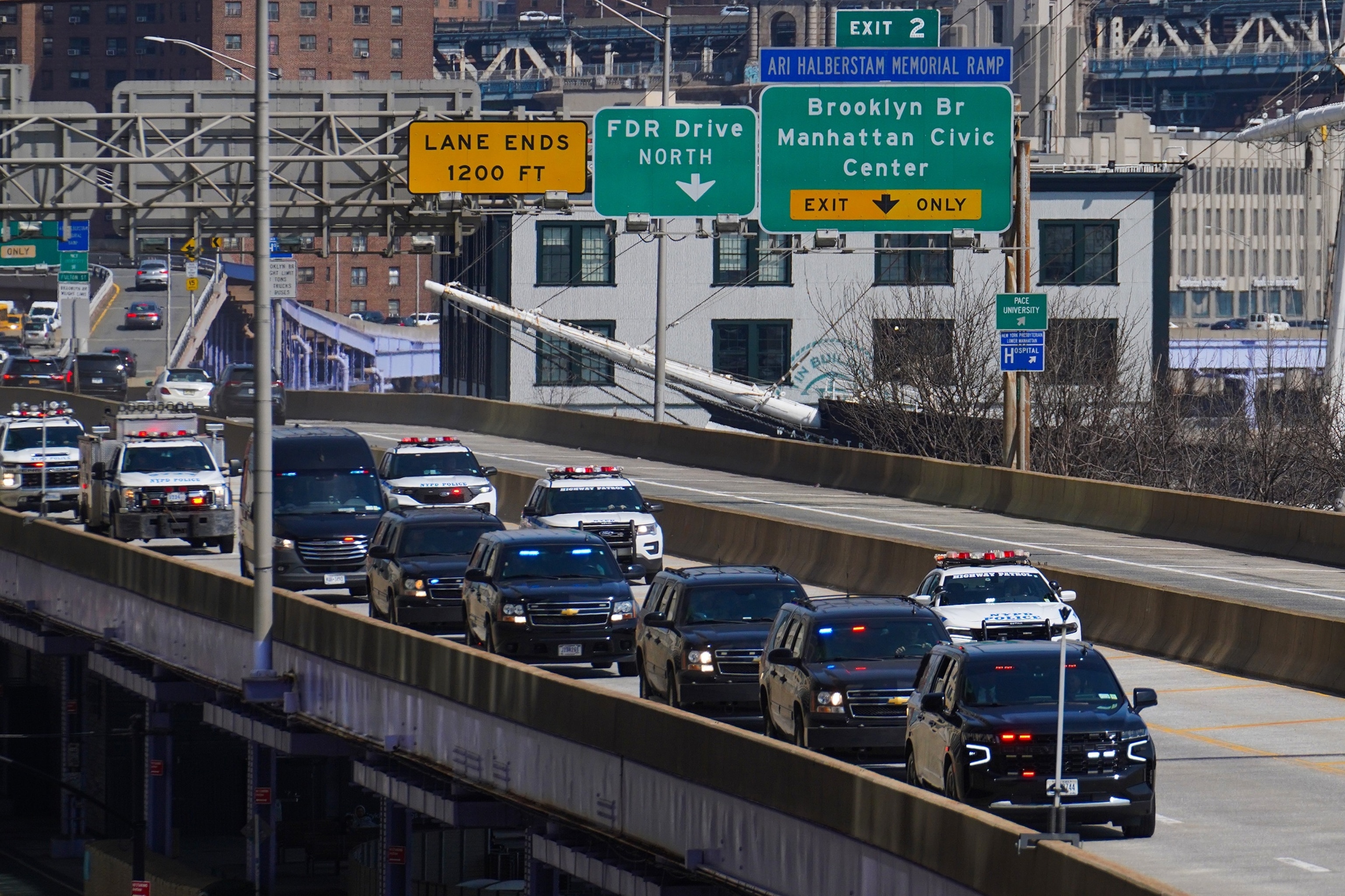 Una caravana que transporta al derrocado presidente venezolano, Nicolás Maduro, y su esposa Cilia Flores sale de Manhattan después de que la pareja se presentó a una audiencia de conferencia de estatus en un tribunal federal el 26 de marzo de 2026 en la ciudad de Nueva York.