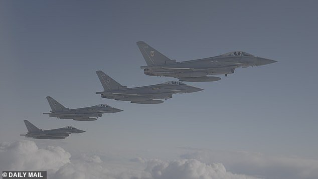 Cuatro tifones de la RAF se forman junto a la Voyager durante el ejercicio Bandera Roja