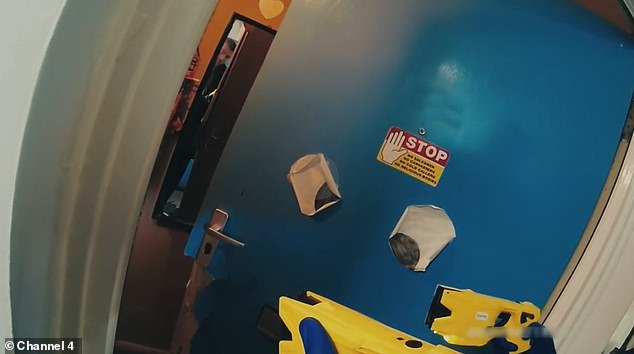 El asombroso material cinematográfico muestra que un equipo de respuesta policial de Bedfordshire estalló en un apartamento en Luton después de que se pueden escuchar disparos el 13 de septiembre del año pasado.