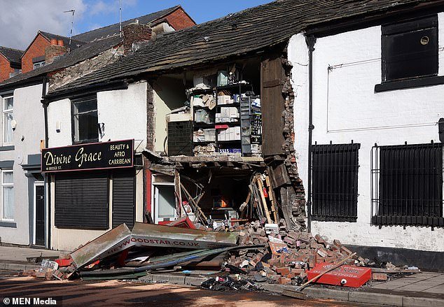Parte de Heywood Star Takeaway en Rochdale fue arrojado por ladrillos y escombros que cayeron después del accidente grave el domingo alrededor de las 4.40 a.m.