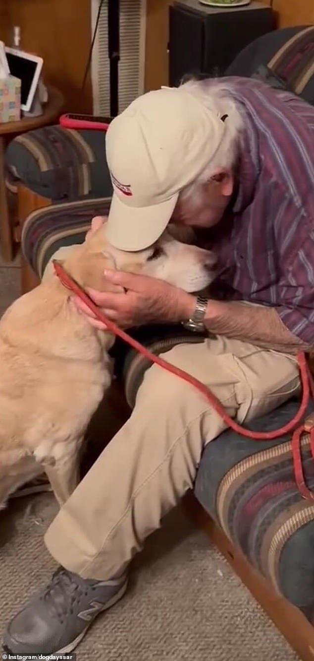 Norman Feigenbaum, de 93 años, tuvo un emotivo reencuentro (en la foto) con su perro labrador Sunny después de que ella estuvo desaparecida durante casi dos semanas.