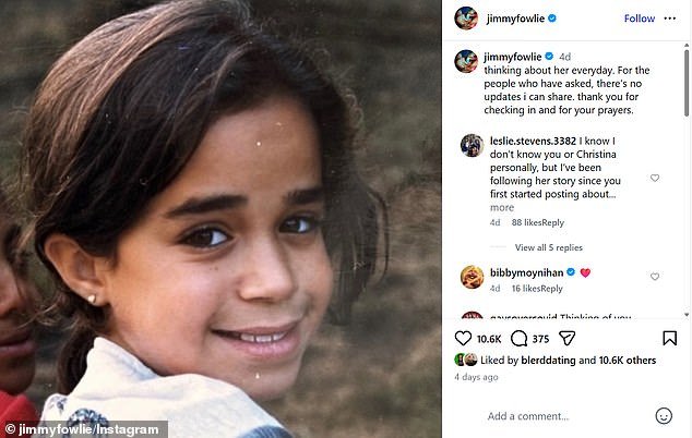 “Para las personas que han preguntado, no hay actualizaciones que pueda compartir”, escribió Fowlie el 24 de abril. “Gracias por consultarnos y por sus oraciones”.
