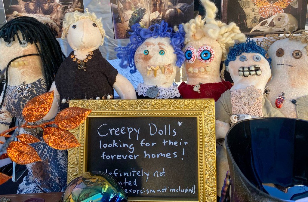 “No se trata sólo de vender, sino de conectarse”, dijo Phoenix Artifex, cuyo stand presentaba muñecos espeluznantes.