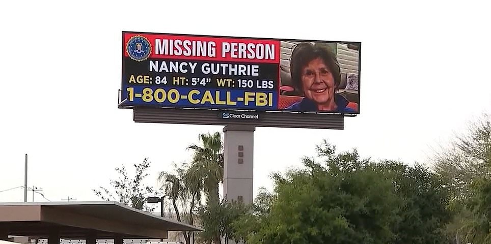 Se están colocando vallas publicitarias sobre personas desaparecidas de Nancy Guthrie en todo el país
