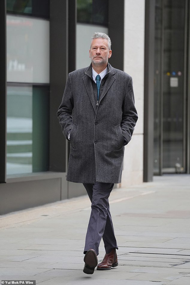 El ex líder del Reino Unido en Gales, Nathan Gill, viene en el Old Bailey, el centro de Londres, donde está acusado de una conspiración para la inspección de sobornos después de la Ley de Derecho Penal de 1977 y con ocho sobornos según la Ley de sobornos, 2010.