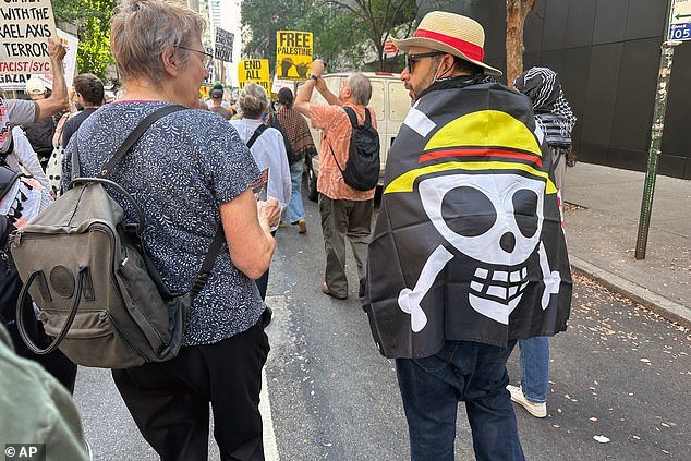 La pancarta “One Piece” aparece ahora en los EE. UU., vista en esta manifestación pro palestina en la ciudad de Nueva York en septiembre.