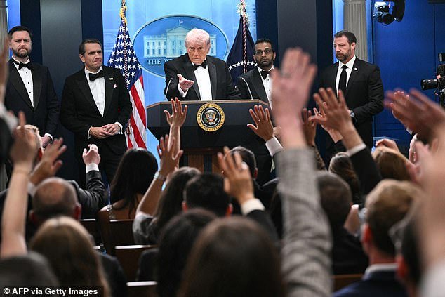 Trump llegó a un evento en el que los líderes de una nación en guerra se reunieron con celebridades y periodistas para una cena que normalmente desató un debate sobre si la relación entre los periodistas y sus fuentes debería incluir socializar juntos y deshacerse de relaciones a veces conflictivas.